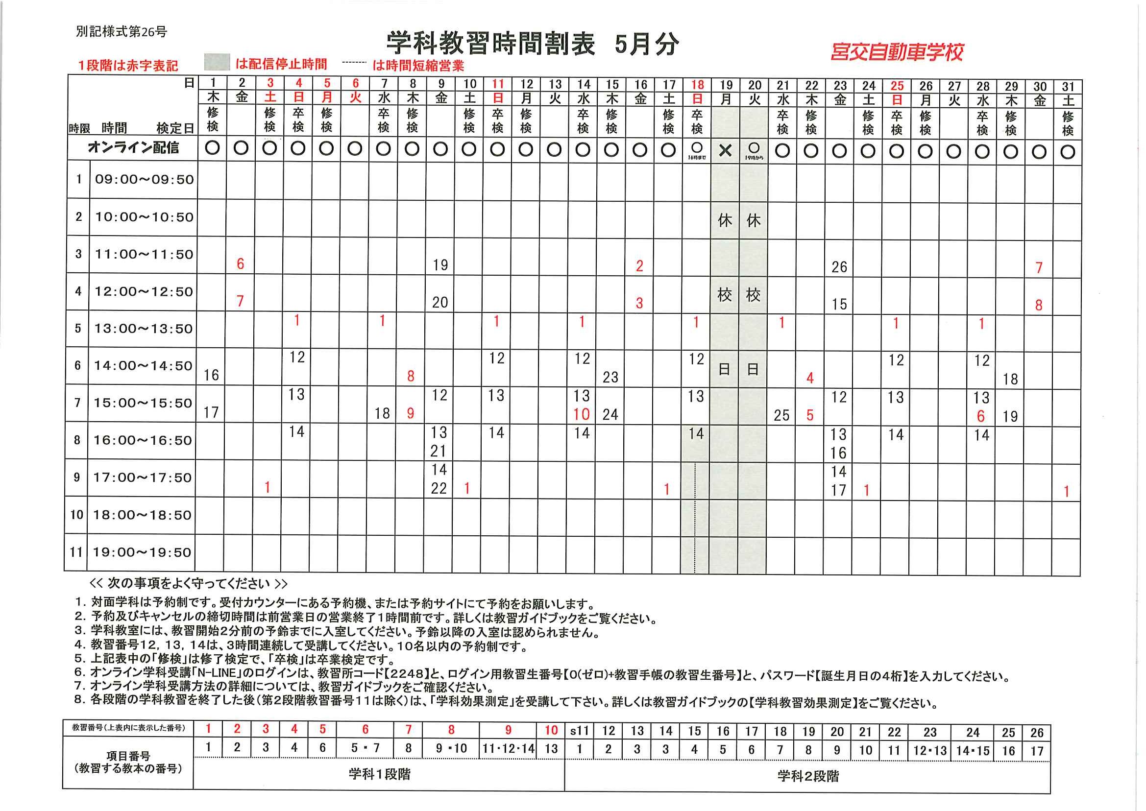 令和7年5月分学科予定表ダウンロード