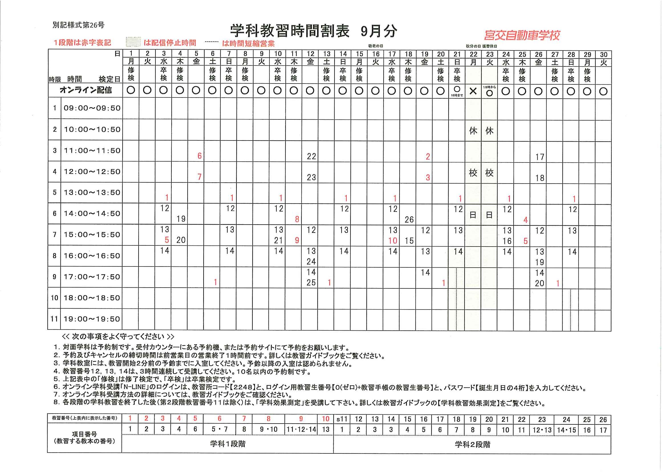 令和7年9月分学科予定表ダウンロード